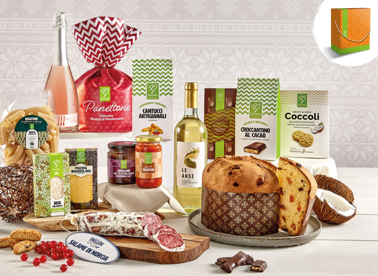 In den Ready Christmas Baskets finden Sie eine große Auswahl an Paketen, die von unseren Experten speziell für Sie entworfen wurden, für ein Geschenk, das jeden Geschmack und jedes Budget am besten zufriedenstellt. Wenn Sie Einfachheit bevorzugen, werfen Sie einen Blick auf unsere Sweet Baskets, mit denen Sie die typischen Süßigkeiten unserer Tradition zu immer begrenzten Kosten auf den Tisch bringen können. Für eine größere Auswahl gibt es die herzhaften Körbe: Wir haben sowohl Pakete nur mit herzhaften Produkten als auch komplettere Pakete, die von ersten Gängen bis zu zweiten Gängen und Desserts reichen. Entdecken Sie mit Bennati die Freude am Danken neu: Weihnachtskörbe sind das ideale Geschenk für Ihre Kunden, Mitarbeiter, Partnerfirmen und sogar Ihre Freunde.