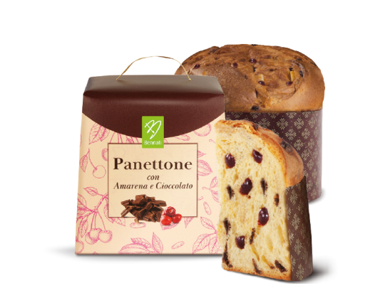 Panettone aus der Konditorei mit Amarenakirschen und Schokodrops in Box 750 g